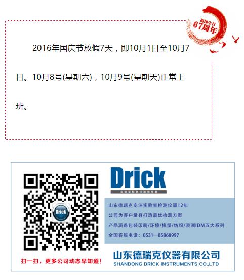 山東德瑞克2016年國慶節放假通知