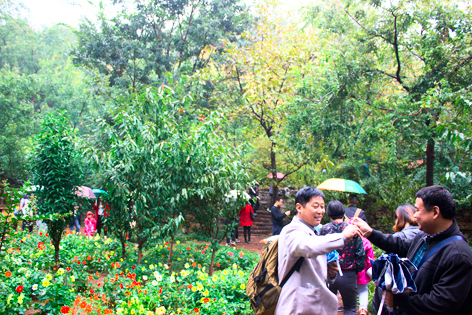天公作美,一場(chǎng)淅淅瀝瀝的秋雨應景而落,沒(méi)有秋日斜陽(yáng),雨中的山川倒顯得更加通透,清潤,更加秋意盎然。德瑞克人雨中穿行,留下了一路歡聲笑語(yǔ)。紅葉、山川、飛瀑、古塔,和如織的游人一起組合成了一幅唯美的秋日油畫(huà),伙伴們用微笑定格,和美景和這美好的時(shí)光一起留進(jìn)了影象。